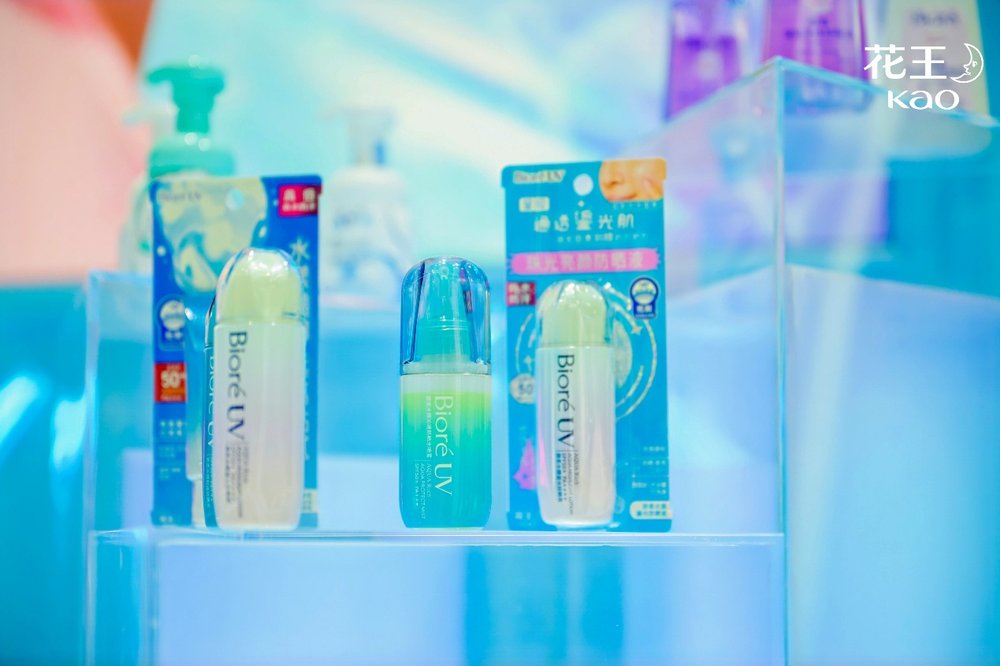 碧柔水膜鎏光防晒液搭载花王独家“御光磁吸水微囊”黑科技,兼顾高倍防护与清爽肤感,同时叠加3重珠光成分,实现“防晒+提亮+妆前三合一”,轻松打造伪素颜妆效;这款产品将于2026年升级追加防水防汗属性,进一步适配户外、运动等场景。